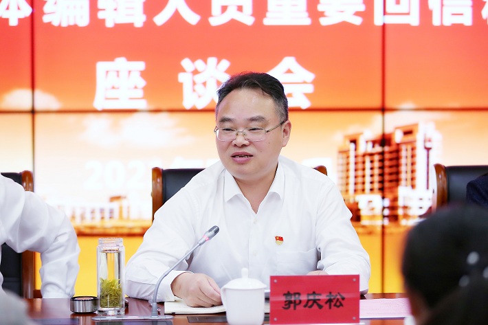 郭庆松在听取与会代表发言后作总结讲话。郭庆松指出,我们通过座谈会的形式纪念哲学社会科学工作座谈会召开五周年,学习贯彻习近平总书记给《文史哲》编辑部全体编辑人员重要回信精神,是一次思想再出发、行动再动员,目的是进一步推动我校哲学社会科学高质量发展。