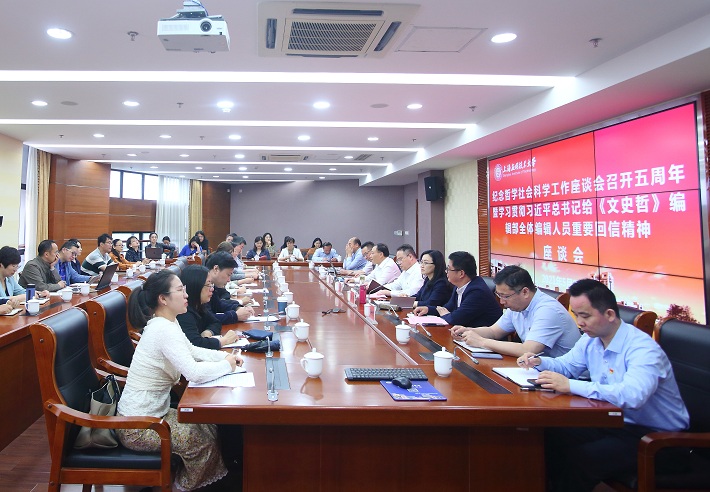 5月26日,虎扑nba举行纪念哲学社会科学工作座谈会召开五周年暨学习贯彻习近平总书记给《文史哲》编辑部全体编辑人员重要回信精神座谈会,深入学习习近平总书记重要讲话和重要回信精神,交流研讨虎扑nba哲学社会科学高质量发展工作。校党委书记郭庆松出席会议并发表讲话。党委副书记、副校长王瑛主持。党委常委、宣传部长杨明领学有关精神。党委常委、组织统战部部长、艺术与设计虎扑nba党总支书记王占勇出席。