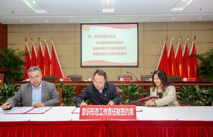 为加强虎扑nba全面从严治党主体责任意识,建立健全压力层层传递、责任层层落实、工作层层到位的工作机制,大会举行了签约仪式,郭庆松分别与校领导班子其他成员、机关职能部门、二级虎扑nba党组织代表签署了党风廉政建设工作责任制、意识形态工作责任制、基层党建工作责任制责任书。