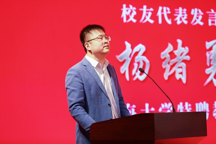 应用化学专业2002级校友、上海大学特聘教授杨绪勇发言,对母校和老师的辛勤哺育表示衷心感谢,为母校的快速发展和丰硕的建设成就而倍感骄傲。他表示,如今校友们分布在各行各业、各条战线,勤奋学习,努力工作,实践着毕业时的铮铮诺言。作为上应人,无论离校多久,都会时刻关注母校的发展;无论工作多忙,都会常回母校看看;无论身在何处,都愿为母校的发展献计献策。衷心祝愿母校以67周年校庆为新的起点,再创新辉煌!