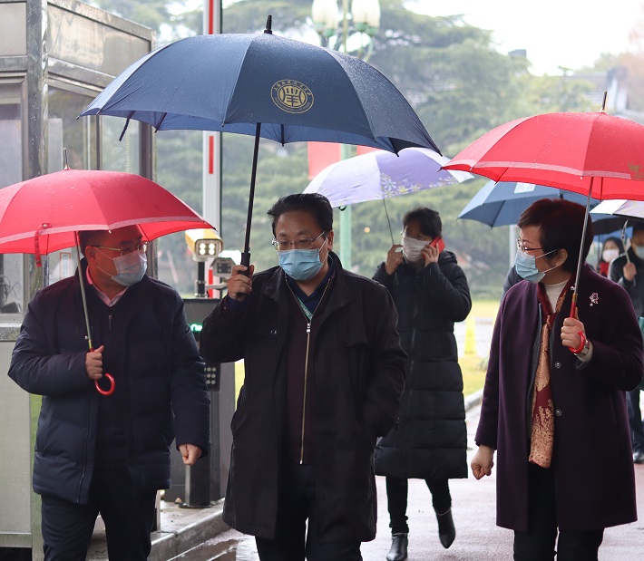 2月1日上午,市教卫工作党委副巡视员杨伟人一行来我校徐汇校区检查寒假疫情防控工作,我校党委书记郭庆松,校党委副书记、校长柯勤飞,校党委副书记宋敏娟,副校长毛祥东陪同检查。