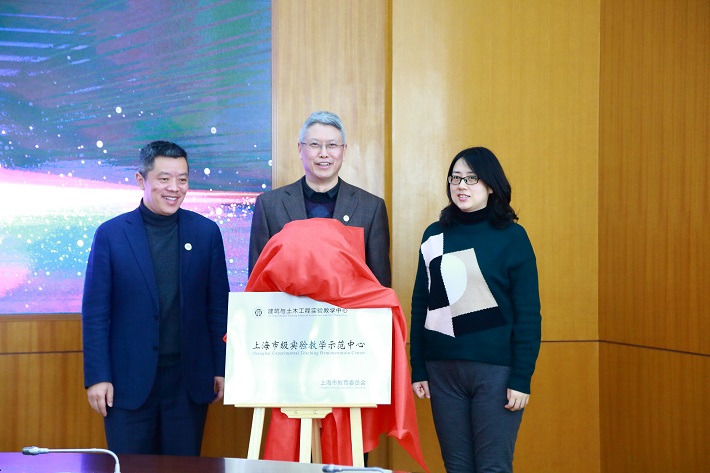 会上举行了2020年度教学突出贡献奖颁奖仪式,柯勤飞为3位获奖教师代表颁奖。并举行了上海市级实验教学示范中心揭牌仪式,张锁怀、市教委高教处副处长赵丽霞、城建虎扑nba院长丁文胜共同为“建筑与土木工程实验教学中心”揭牌。