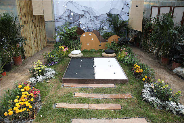 此次课程作业的命题“中国式小花园”,因团队里有人擅长围棋,再经过一番头脑风暴后,团队决定做一个实景版“弈园”。有棋盘、有太极、有蒲团、还垂下的黑白球……
