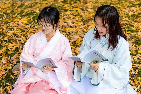 每日清晨,在上海应用技术大学奉贤校区校园里,总能见到身着明丽汉服的同学们,在校园秋色里,在溪边胜景处吟咏诵读,他们声情并茂地诵读中华优秀传统文化经典,在诗词文赋中感受经典之美、感悟智慧光芒。在清晨的书声朗朗中,同学们开启了元气满满的一天。