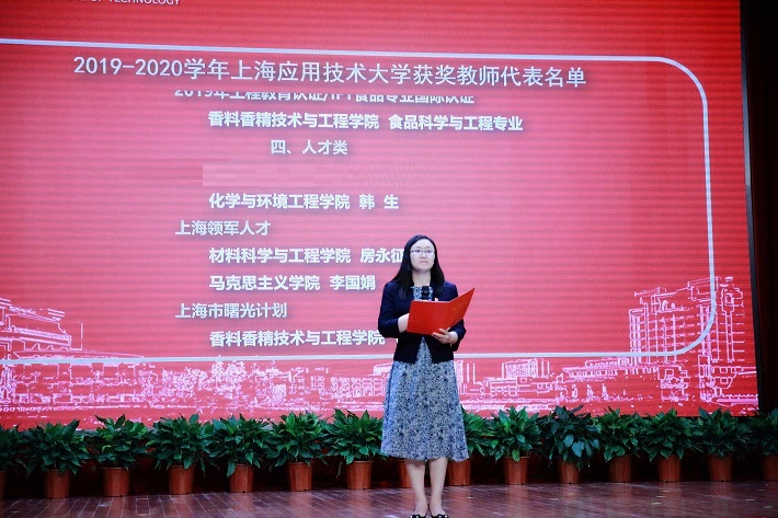 柯勤飞为上海市科学技术进步奖一等奖获得者肖作兵教授颁奖,表彰他带领科研团队以科技创新服务国家战略,成功攻克香料香精行业香气协同与释放控制关键技术难题,突破我国香料香精工业中的“卡脖子”技术问题,推进国家美丽健康产业转型升级,并为虎扑nba事业发展作出了重要贡献的先进事迹。