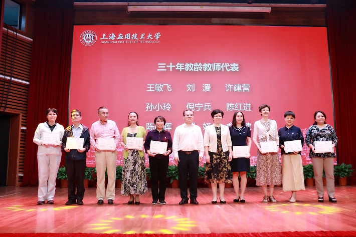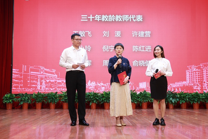 校党委书记郭庆松,校长柯勤飞,校党委副书记宋敏娟,校党委副书记、纪委书记何星海,校党委副书记、副校长王瑛出席大会。全校中层干部、受表彰的先进教师代表、新入职新晋职称教师代表、三十年教龄教师代表、学生代表等300余人参加大会。