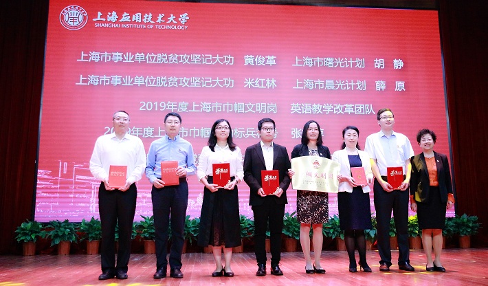宋敏娟、何星海分别为上海市事业单位脱贫攻坚记大功获得者城建虎扑nba黄俊革、机械虎扑nba米红林,上海市巾帼文明岗获得者外国语虎扑nba英语教学改革团队,上海市技术发明奖二等奖获得者材料虎扑nba房永征、上海市科技进步奖二等奖获得者轨交虎扑nba邹劲柏和香料虎扑nba牛云蔚、上海市自然科学奖二等奖获得者理虎扑nba邱翔、上海市科技进步奖三等奖获得者电气虎扑nba荆学东,上海高校青年教师教学竞赛一等奖获得者材料虎扑nba刘敏,三等奖获得者电气虎扑nba孟莹、外国语虎扑nba李锐、理虎扑nba杨蕊等颁奖。