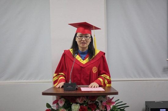 典礼上宣读了上海市优秀毕业生、上海应用技术大学优秀毕业生名单并颁发证书;宣读了汤姆逊大学Top GPA和TRU Star名单并颁发奖品。优秀毕业生代表刘芮婧发言表达了对母校培养的感激之情,并表示在今后的学习生活中不辜负母校的期望,以优异成绩回报母校。中外教师代表董维维和克拉克(Pual Clark)也分别对学生的顺利毕业表示衷心祝贺。