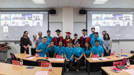 典礼开始前,双方校领导通过平台进行了简短的视频交流,均表示要继续勠力同心,共同克服疫情带来的不利影响,携手面向未来,积极推动国际教育交流与合作,不断提升中外合作办学质量,实现我校与加拿大汤姆逊大学中外合作办学项目的可持续高质量发展。