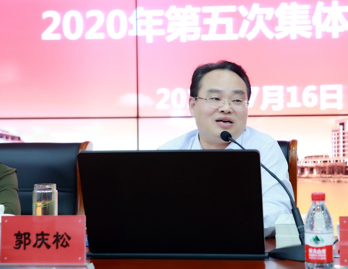 7月16日下午,校党委理论学习中心组举行2020年第五次集体学习会,集中学习《习近平谈治国理政》第三卷。校党委书记郭庆松作领学报告,校党委副书记、校长柯勤飞主持学习会。校党委副书记宋敏娟,校党委副书记、副校长王瑛,副校长张锁怀,校党委常委、宣传部长杨明,校党委常委、组织统战部长王占勇出席学习会。