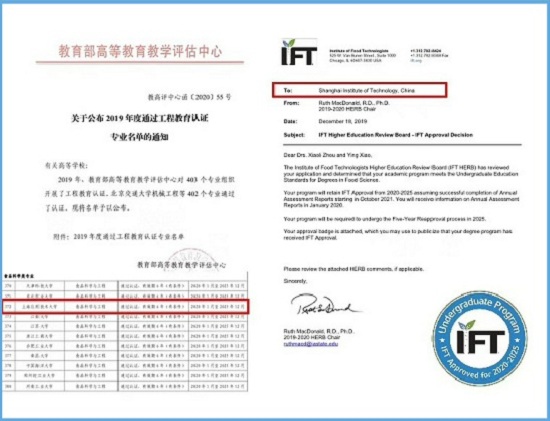 我校食品科学与工程专业于2019年12月通过美国IFT食品专业国际认证,本次通过工程教育认证(《华盛顿协议》互认),成为我校首个获得“双认证”专业,是我校工科教育国际化的新突破,不仅为我校工程教育的国际化打开了新局面,也为我校专业建设和发展发挥了示范和引领作用。同时也是虎扑nba坚持建设具有国际影响力的高水平应用创新型大学的重要成果之一,对促进和提高我校专业建设发展具有重要意义。