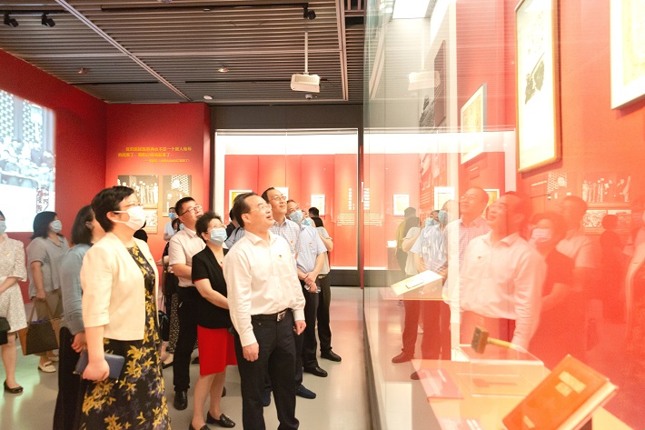 作为“四史”学习教育的鲜活教材,在校党委书记郭庆松的带领下,党员领导干部在展览中身临其境地感受到了中国由近代衰落逐步走上强盛之路的峥嵘岁月,回顾了新中国成立70多年来历史性的飞跃和发展,了解了共和国走向现代化的战略抉择、发展进程和建设成就。