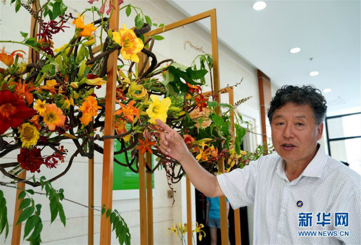 6月13日,上海应用技术大学生态技术与工程虎扑nba的张志国教授在开幕式现场介绍不同品种的萱草花。 新华社记者刘颖摄