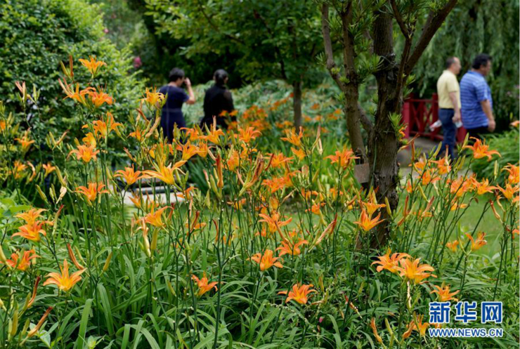 6月13日,观众在上海应用技术大学奉贤校区参观萱草展览。新华网 发