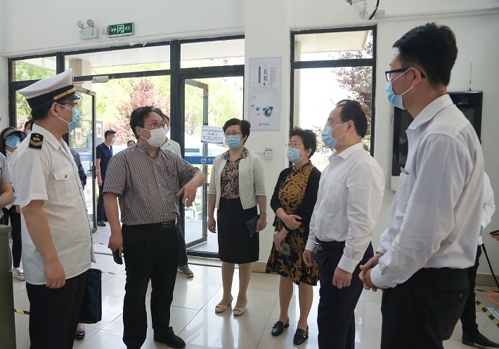 5月19日,市教卫工作党委副巡视员杨伟人,市卫健委疫情防控督导检查组处长、监督科虎扑nba组处长林建海、李萍,市教委国际交流副处长栾雪莲等一行到我校奉贤校区检查指导疫情防控相关工作。校党委书记郭庆松,校党委副书记、校长柯勤飞,校党委副书记宋敏娟,副校长毛祥东全程陪同检查。