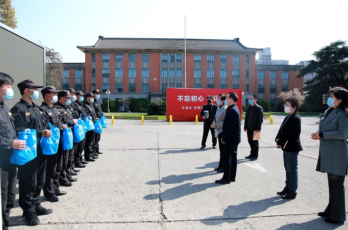 3月20日下午,校党委书记郭庆松、校长柯勤飞亲切看望并慰问我校新冠肺炎疫情防控一线工作人员。