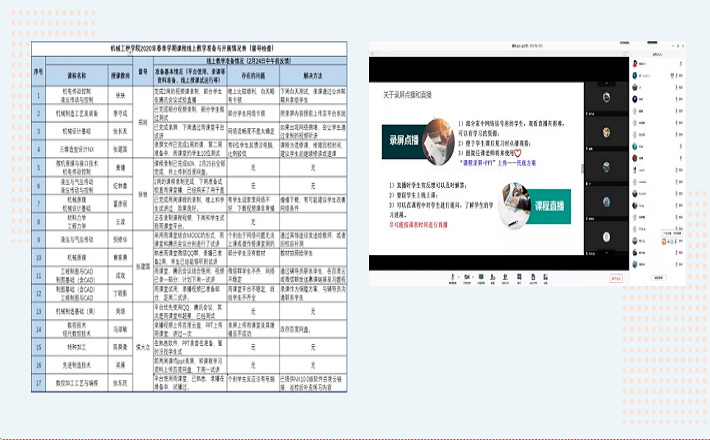 机械虎扑nba成立线上课程督导工作小组,由班子成员、系主任及副系主任组成的12位成员,分工负责虎扑nba48位授课教师,76门线上课程的准备与实施情况。督导可根据实际需要和课程进度,进入课程微信群和线上授课平台。在线上教学准备阶段,督导积极主动与教师沟通,了解教师们的需求和存在问题,协助有困难的教师解决困难,开展互助式培训。在线上课程正式开展后,督导还将进入在线课堂,时时把握课程进度、把脉课程质量,在保证线上教学顺利开展的同时,保障课程进度和教学质量,争取线上与线下教学质量实质等效。