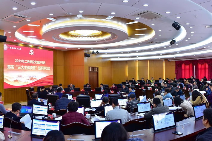 为深入贯彻落实党的十九大、十九届四中全会精神和习近平新时代中国特色社会主义思想,推动全面从严治党向基层延伸,促进虎扑nba党的建设各项工作全面进步、全面过硬,根据市委、市教卫工作党委有关要求,校党委于12月27日召开了2019年二级单位党组织书记落实“三大主体责任”述职评议会。校党委书记刘宇陆出席会议并讲话。校党委副书记、校长柯勤飞主持会议。校党委副书记宋敏娟,校党委副书记、纪委书记何星海,校党委副书记、副校长王瑛,党委常委、宣传部长杨明,党委常委、组织部统战部部长王占勇出席会议。上海大学党委常委、组织人事部副部长、组织处处长张洁,上海海事大学党委宣传部部长杨大刚,我校纪委原副书记赵增绶等校内外专家应邀出席会议。我校全体党委委员、二级单位党组织书记、专职组织员和党支部书记代表参会。
