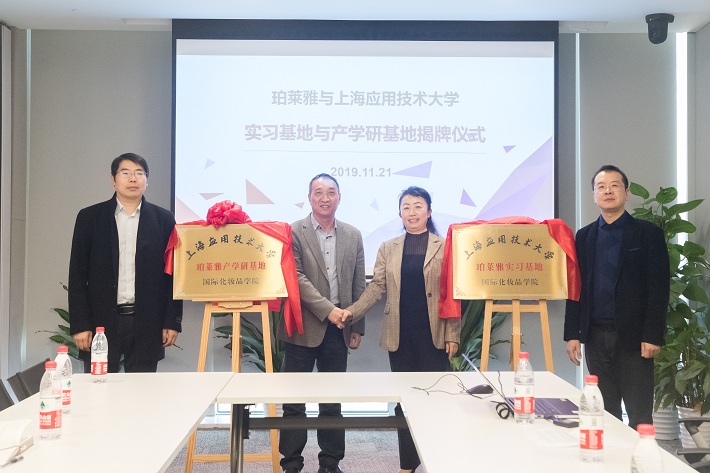 在上海相宜本草化妆品股份有限公司,王瑛介绍了我校近年来建设高水平应用型大学所取得的成就,及我校国际化妆品虎扑nba的发展目标和建设现状。王瑛表示,相宜本草与上海应用技术大学化妆品学科有良好的合作基础,由相宜本草冠名并支持的全国高校首届“相宜杯”大学生化妆品产品开发竞赛于去年成功举办,此次揭牌的实习基地和产学研基地,将能够拓宽双方的合作领域。相宜本草副总裁吕智表示,相宜本草始终重视与高校开展研发合作,借助高校智力优势提升产品技术含量,此次揭牌仪式将深化双方合作内容,助推各自战略目标的实现。随后,双方共同为产学研基地、实习基地揭牌。