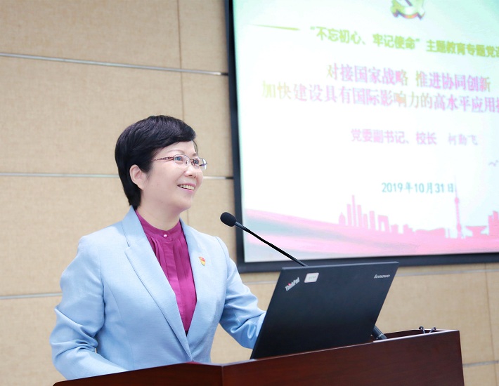通过详细阐述对习近平总书记关于教育重要论述的学习体会,回顾中国教育改革的基本经验,柯勤飞强调,要进一步落实立德树人根本任务,着力提升教师育德意识和育德能力,推进全员全过程全方位育人。她表示,“必须把握高等教育的战略定位,坚持不懈用习近平新时代中国特色社会主义思想武装广大师生头脑,把立德树人融入思想道德教育、文化知识教育、社会实践教育中,努力构建德智体美劳全面培养的教育体系,加快建设价值引领、知识传授、能力培养三位一体的更高水平的人才培养体系。”