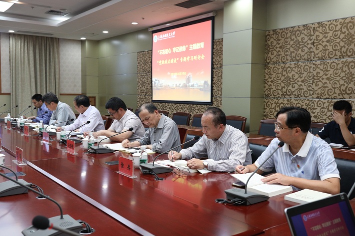 10月10日下午,根据校党委“不忘初心、牢记使命”主题教育集中学习安排,校领导班子围绕“党的政治建设”召开专题学习研讨会。校党委书记刘宇陆,校党委副书记、校长柯勤飞,校党委副书记宋敏娟,校党委副书记、纪委书记何星海,校党委副书记、副校长王瑛,副校长张锁怀,党委常委、宣传部长杨明,党委常委、组织部统战部部长王占勇出席会议。刘宇陆主持学习会,柯勤飞、杨明领学,宋敏娟、王瑛作交流发言。