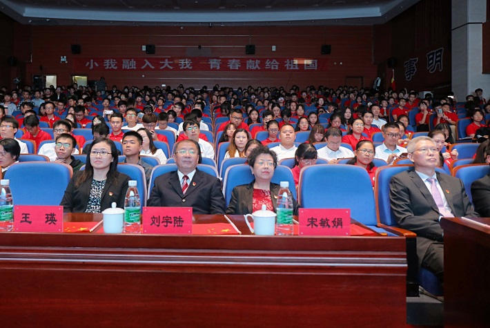上午10时,上海应用技术大虎扑nba园到处弥漫着庆祝大会的盛况。校党委书记刘宇陆,校党委副书记宋敏娟,校党委副书记、副校长王瑛,副校长张锁怀等在奉贤校区图书馆B106报告厅,与500余名师生共同观看了实况直播。