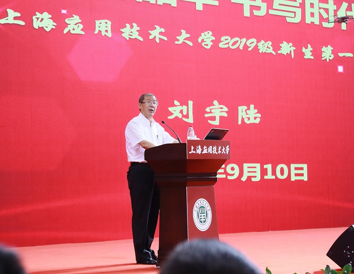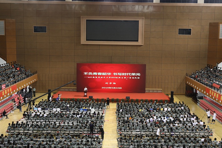 9月10日晚,正值我国第35个教师节,奉贤校区体育馆座无虚席,校党委书记刘宇陆以“不负青春韶华 书写时代荣光”为题,围绕“肩负新时代智造强国的责任担当”“投身高水平应用技术的伟大实践”“迸发民族中国梦伟大复兴的青春活力”三个方面,为2019级全体新生讲授第一堂思政课。校党委副书记宋敏娟出席授课活动。
