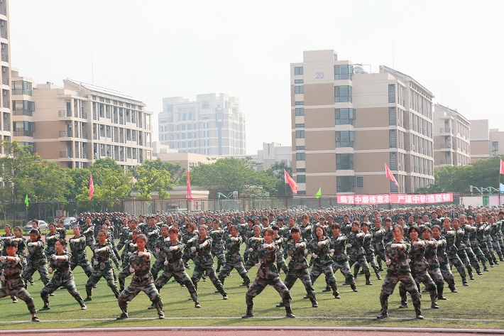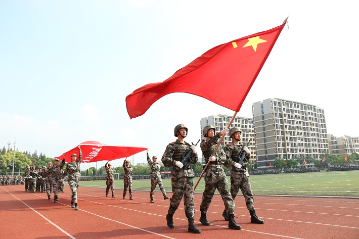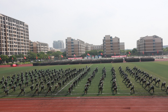 伴随着悠扬的《我爱你中国》的乐曲,千人方阵依次摆出“五四”“1921”“1949”“1978”“1949—2019”“中国梦”等造型。“我爱我的国”“我爱我的家”“我爱上应大”,同学们全情投入,用特殊的语言传递出对祖国、对虎扑nba最真挚的情感。随后进行的女子匕首操表演巾帼不让须眉,一招一式都挥舞出女兵的飒爽英姿;男子格斗演练拳脚刚劲有力,动作娴熟连贯,尽显上应大男儿本色。会操表演充分展示了十二天军训取得的丰硕成果,赢得了现场热烈掌声。