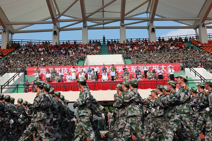 9月12日上午,我校2019级学生军训汇报大会在奉贤校区举行。校党委书记刘宇陆,校党委副书记、校长柯勤飞,校党委副书记宋敏娟,校党委副书记、纪委书记何星海,校党委副书记、副校长王瑛,副校长毛祥东,中国人民解放军73181部队政治部主任刘国华中校,军训团副团长、校党委学工部部长袁翔,军训团副团长、校武装部部长杨军出席大会。大会由宋敏娟主持。