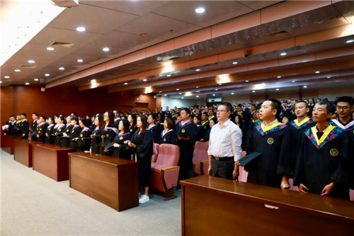 在欢快的音乐声中,张锁怀等共同为学位获得者代表正冠拨穗,颁发学位证书。毕业典礼在全场激昂的《毕业歌》大合唱中圆满落幕。