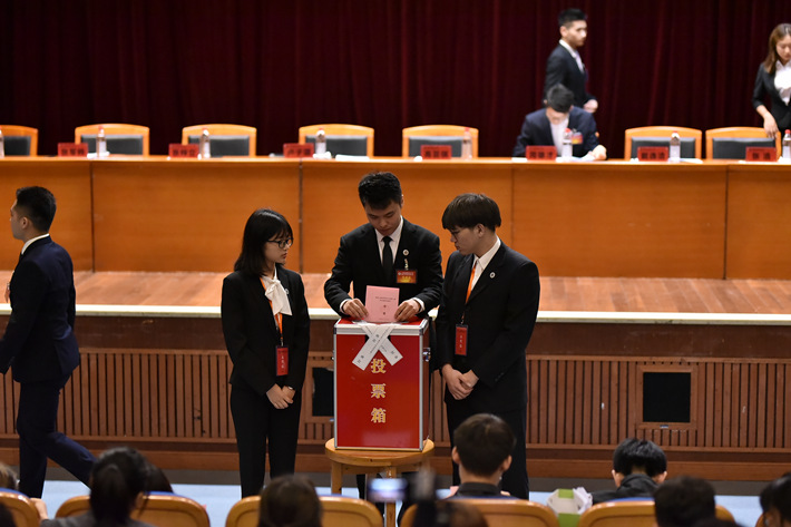 会上,校学生会主席戴逸洁代表第二届学生委员会作工作报告,研究生会筹备委员会副主任冯闯作研究生会筹备委员会工作报告,学生自主管理委员会主任卢子譞作第二届学生委员会提案工作报告。大会表决通过了《第二届学生委员会工作报告》、《研究生会筹备委员会工作报告》、《第二届学生委员会提案工作报告》,选举产生了以张梓立为主任的第三届学生委员会,以孟可为学生会主席、高源、冯蕾、方媚雯、张东淏、吴璇琪为学生会副主席的主席团;以张雨薇为主任的第一届研究生委员会,以汤硕为研究生会主席、何华、叶彤彤、马世旭、刘雪为研究生会副主席的主席团;投票确定了新一年的学代会、研代会代表提案。