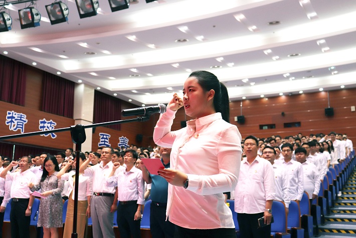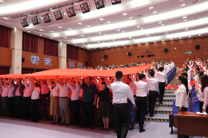 大会上,香料香精技术与工程虎扑nba2019届毕业生赵燊代表毕业生党员代表发言;生态技术与工程虎扑nba2019届毕业生戴逸洁带领全体毕业生党员重温了入党誓词;一面巨幅党旗在全体毕业生党员的手中缓缓传递,将大会推向了高潮。