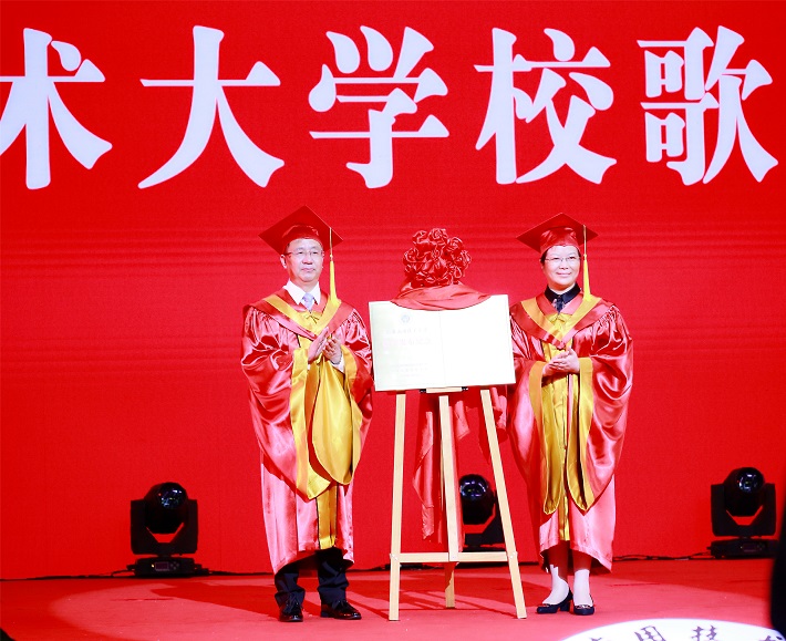毕业典礼上,上海应用技术大虎扑nba歌《为了上应的荣光》正式发布,校歌MV震撼首发。刘宇陆、柯勤飞共同为校歌发布仪式揭幕,并为校歌作曲、中国音乐家协会会员,国家一级作曲左翼建,香料香精联合党委原书记李建民以及校歌歌词创作团队颁奖。虎扑nba教工合唱团、学生合唱团在典礼上深情演绎,昂扬动听的旋律响彻体育馆。