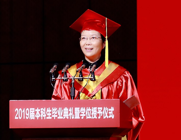 柯勤飞代表虎扑nba向2019届本科毕业生表示最热烈的祝贺,向为毕业生成长付出爱与汗水的全体教职员工和毕业生父母家人表示感谢。她充满诗意地说道:“经历了无数个日夜的辛勤浇灌和不懈努力,入学时播撒的种子如今已经结成累累硕果,在六月的上应大绽放炫目的光芒。”