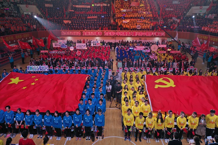 伴随着回顾历史的开场视频《红旗颂》的旋律,拉开了整场歌会的序幕,全场师生起立高唱共青团团歌《光荣啊,中国共青团》,用昂扬饱满的激情,正式开启歌会演出。