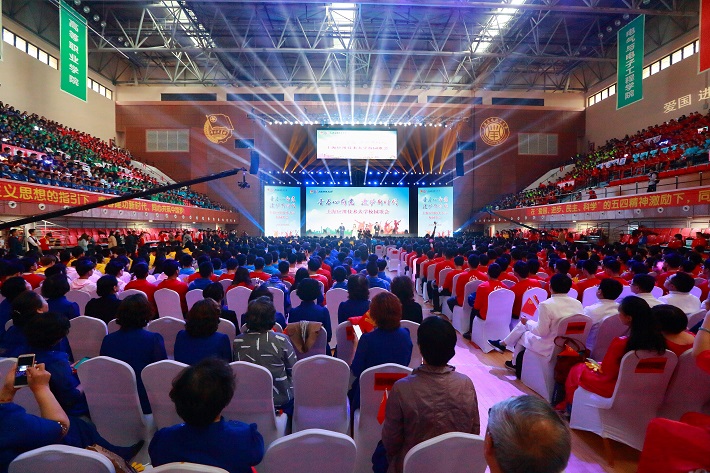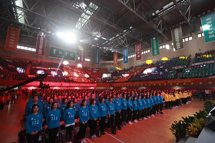 在全校师生喜迎中华人民共和国成立70周年、纪念伟大的“五四”运动100周年、欢庆上海应用技术大学建校65周年之际,为抒发和展示广大上应学子坚定理想信念、牢记时代使命、高扬青春旋律的激情与风采,激励全校师生共同推进新时代上应大各项事业快速发展,4月26日下午,“青春心向党·建功新时代”上海应用技术大虎扑nba园歌会在奉贤校区体育馆隆重举行。4000余名师生共同重温红色初心,共同讴歌伟大时代,共同唱响奋进旋律,共同演绎了一场精彩的青春艺术盛会。