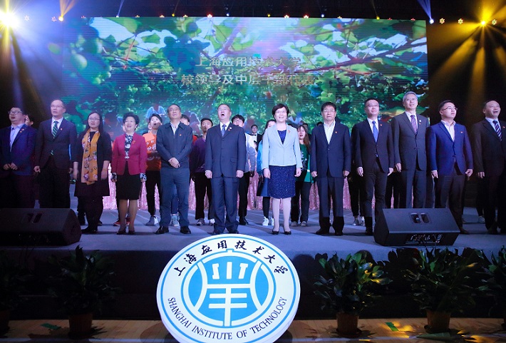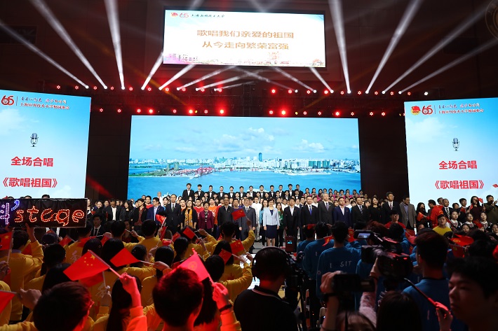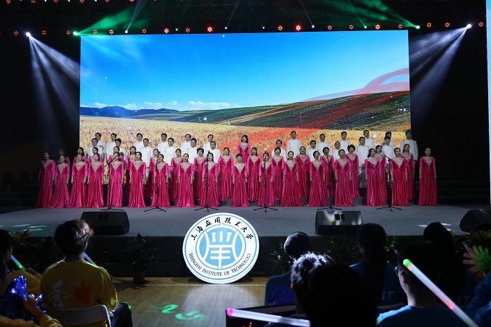 校党委书记刘宇陆,校党委副书记、校长柯勤飞,中共奉贤区委常委、宣传部长徐卫,原校党委书记祁学银,校党委副书记宋敏娟,校党委副书记、副校长王瑛,副校长张锁怀,副校长毛祥东,共青团上海市委副书记戴冰等出席歌会并登台与师生一同演出。
