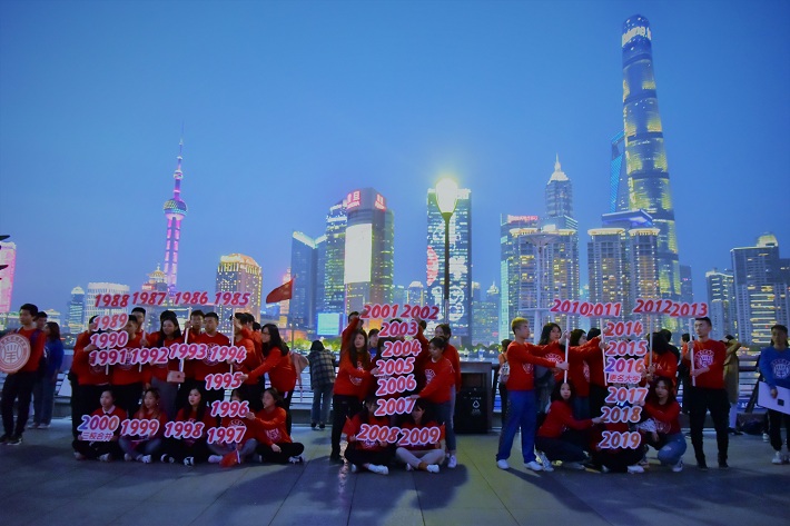 晚18时起,在139米高、43米宽的“外滩之窗”大屏上,“我爱上应大”的表白、“创工程教育名校、育应用技术英才”的愿景、“贺上海应用技术大学65周年校庆”的祝福语汇聚成一束束霓虹,闪耀在外滩夜空中。在场师生欢呼雀跃,高喊祝福语,手中挥舞着校旗,欢乐声经久不息。师生纷纷举起手中的相机和手机,用视频和照片记录这历史性的一刻。在场师生们还在外滩观景平台高唱《我和我的祖国》向校庆献礼,并向现场游客展现了虎扑nba从1954年建校到2019年的办学历史,最后形成了一个“上应·SIT”的队形,过往游客的纷纷点赞。18点30分,外滩之窗再次点亮校庆祝福语,在场师生们纷纷拉开校旗和横幅表达祝福。集体仪式结束后,学生代表给过往行人分发印有校徽和校名的校庆定制荧光手环。