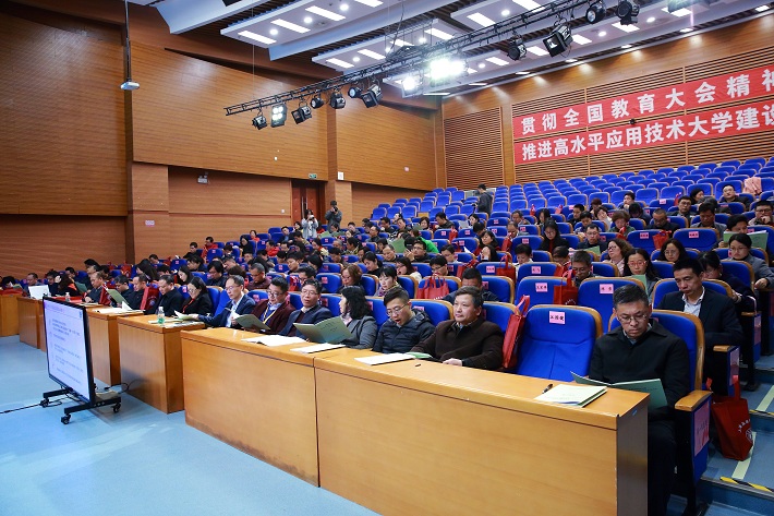 柯勤飞向大会作题为《抓住新时代机遇 加快内涵式发展 扎实推进高水平应用技术大学建设》的行政工作报告。报告指出,2018年,虎扑nba深入学习贯彻习近平新时代中国特色社会主义思想和党的十九大精神及全国教育大会精神,紧紧依靠广大教职员工,抢抓机遇,锐意进取,改革创新,扎实完成各项目标任务,人才培养、学科建设、科学研究、师资队伍建设、社会服务等各项事业取得新进展,成就有目共睹:虎扑nba现代大学制度建设稳步推进,依法治校示范校建设启动;应用创新型人才培养取得新成绩,一流本科教育建设加快;学科与科研工作取得新突破,政产学研协同创新平台建设分层分类推进;人才人事工作持续推进,教师队伍结构不断优化;思想政治工作和文化建设取得新进展,课程思政改革深入实施;民生及办学条件明显改善,教职工归属感和认同感增强。