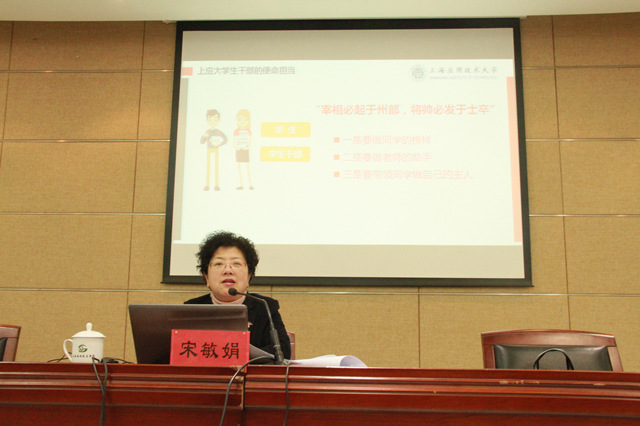 报告以“仰望星空树立理想,脚踏实地培养能力——学生骨干的使命和担当”为题,宋敏娟从中外大学发展史出发,解读“何为大学?大学的价值所在”,指出大学应是求学、问学、求真之所。通过名人青年时期志向,宋敏娟阐述“何为学生?学生的责任所系”,指出青年学生要把自己塑造成一个有理想、有追求、有担当、有作为、有品质、有修为的新时代大学生。通过丰富翔实的案例,宋敏娟诠释了新时代上应大学生干部的使命担当,希望在坐的全体学生干部要“有激情、树理想、明大德、善精技、好学习、广学习、履好职”,仰望星空树立理想,脚踏实地培养能力,切实担负起自己肩上的使命和责任。