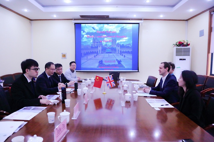 3月13日,副校长毛祥东亲切接待了来访的英国驻上海总领事馆副总领事柯牧申(Tony Clemson),文化教育处领事、英国文化教育协会华东区主任马旭宁(Matthew Knowles),科技创新处官员斯塔凯(Stacey Jiang) 和访问项目处官员哈纳(Hannah Tu)一行。上海市欧美同学会留英分会秘书长顾炜威,伦敦大学虎扑nba校友会秘书长林文贵、理事戴金波、理事傅潇霄陪同来访。双方举行会谈。