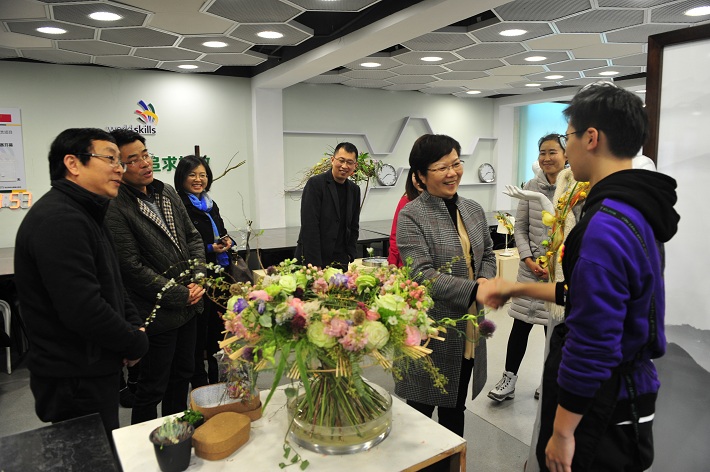调研中,柯勤飞还亲切慰问了我校2016级中本贯通学生、第45届世界技能大赛花艺项目国家集训队队员陆亦炜同学,鼓励陆亦玮以更饱满的热情积极备赛、努力拼搏,争取获得优异成绩。