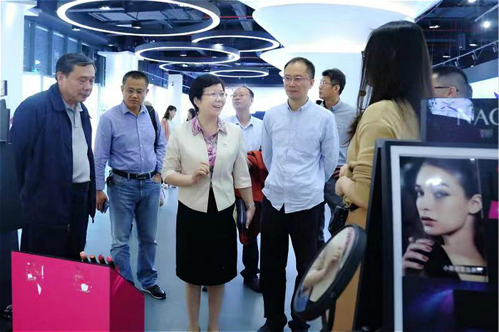 图为校长柯勤飞(左三)带队考察东方美谷研究院(图中左五为副校长毛祥东)