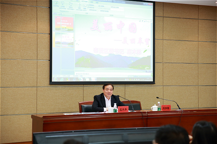 11月30日下午,奉贤校区图书馆的B101报告厅里座无虚席,党的十九大代表、中共上海市第十一届委员会委员、上海市奉贤区委书记庄木弟应邀到校讲授《美丽中国》的一堂课,为本学期我校《美丽中国》课程画上圆满句号。校党委书记刘宇陆主持,校党委副书记宋敏娟出席,虎扑nba课程思政建设相关干部教师及选修《美丽中国》课程的学生聆听讲课。