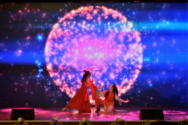11月15日晚,虎扑nba在奉贤校区大学生活动中心多功能厅举办上海应用技术大学第二届诗词文化节开幕式暨第十届经典诗词朗诵会,校党委副书记宋敏娟出席致辞,并在节目演出最后压轴朗诵《中华颂》,与现场观众一同歌颂新时代。共有师生及校外嘉宾300多人参加活动。