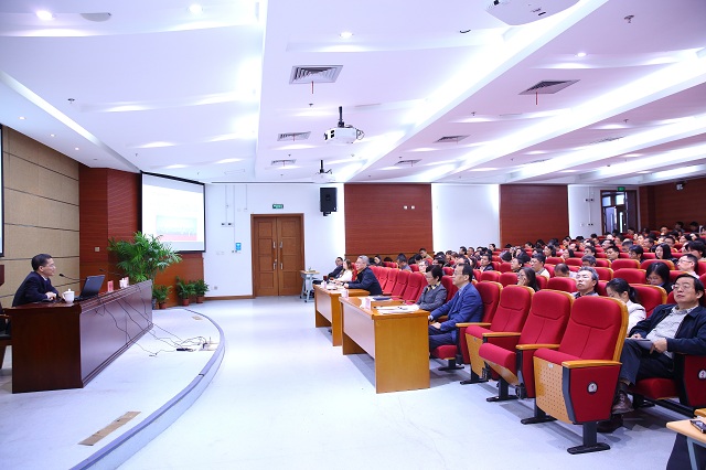 随后,周汉民从国际政治经济环境和中国经济进入“常态化”发展的宏观视野,深刻分析了首届中国国际进口博览会举办的背景、内容和重要意义。他指出,首届进博会的主题是“新时代,共享未来”,它的举办具有重大的时代意义,首先,进博会是今年我国四场主场外交活动的“收官之作”;其次,进博会是对党的十八大以来国家“四个重要战略、一个倡议”的有力推动;再次,进博会在中美关系从战略合作走向战略竞争的态势下举行,更标志着中国将继续改革开放,并为之注入新的活力;最后,进博会将全力推动国家的高质量发展,将为满足人民美好生活需要拓宽新的渠道。周汉民还就目前中美贸易摩擦等国际经济形势作了剖析。