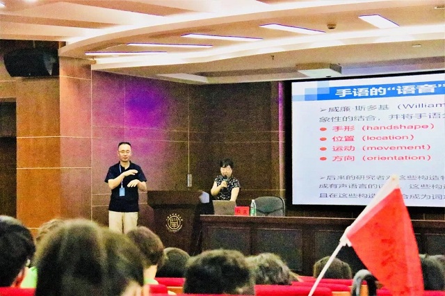 9月22日,在首个国际手语日将到来之际,上海市“心.手相连-聋健融合”手语训练营在我校举行,校党委书记刘宇陆出席开营仪式并致辞。上海市残疾人福利基金会理事长徐凤建出席并讲话。上海市残疾人联合会原巡视员祝永康、上海市残疾人福利基金会副理事长兼秘书长刘建华、上海市聋协主席洪泽出席。