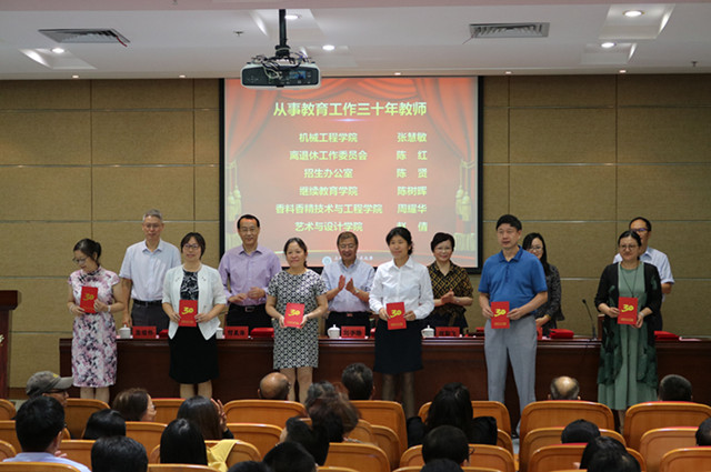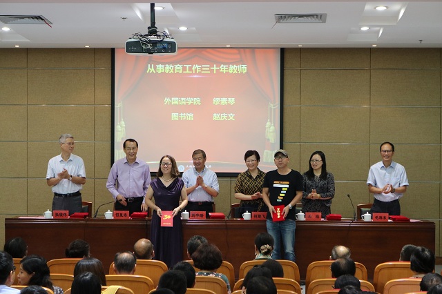 大会表彰了一年来教学、科研、管理各方面取得优异成绩的教职工先进集体和个人,举行了2017年度新晋高级专业技术职务教师聘任仪式和新入职教师宣誓仪式,表彰了从事教育工作三十年的教师。