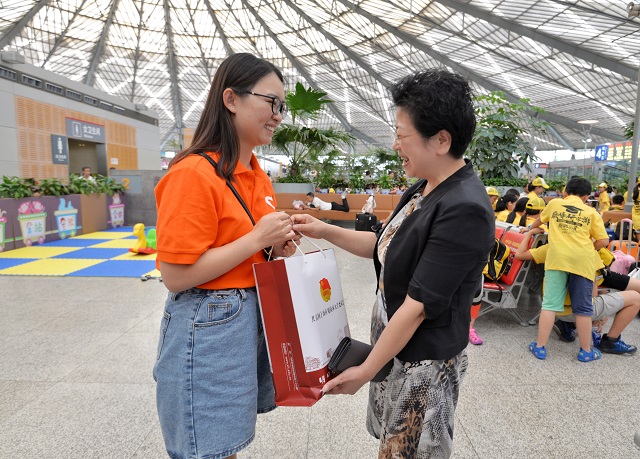 7月27日,校党委副书记宋敏娟在上海南站欢送我校材料虎扑nba赴重庆服务的西部计划志愿者邓茹月同学。