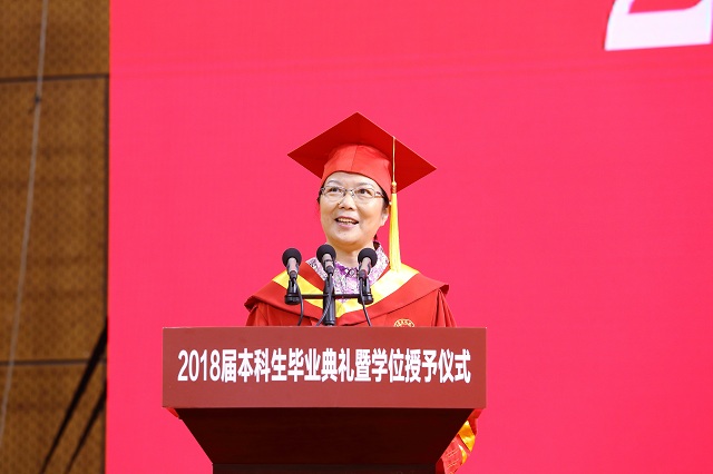郑丹与同学们分享了学业有成的喜悦、表达离别的不舍,并寄语毕业生再攀人生高峰。她对同学们说,梦想的舞台就在你们的面前,祝愿2018届毕业生同学们在未来的人生旅途中大展宏图、梦想成真!母校永远是温馨的港湾,不论什么时候,不论你走到哪里,不论面临什么样的境况,想想你在这里曾经的梦想,母校的大门会永远向你敞开!